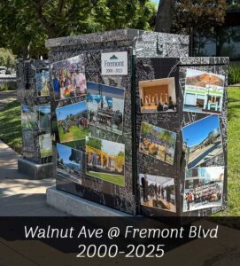 The boxes in Fremont’s new downtown area chronicle the history in four eras through representative photos and maps, selected from the Museum’s archives.